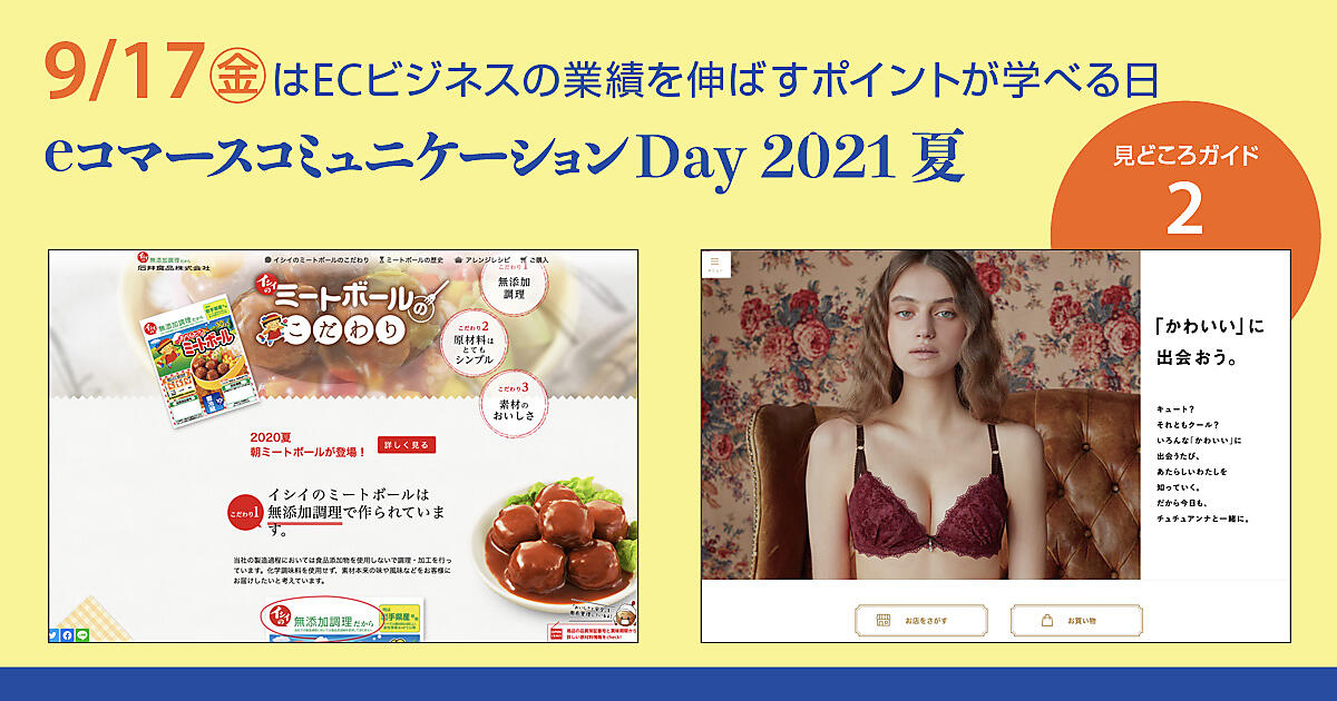 北の達人コーポレーション、Facebook Japanの元代表取締役が立ち上げたMOON-X、石井食品、チュチュアンナ、エクスプライス(旧MOA)、ラクスルといった有名企業が、自らの知見を語る「eコマースコミュニケーションDay 2021夏 ~ECビジネスの業績を伸ばすポイントが学べる1日~」。いよいよ明日開催です。
