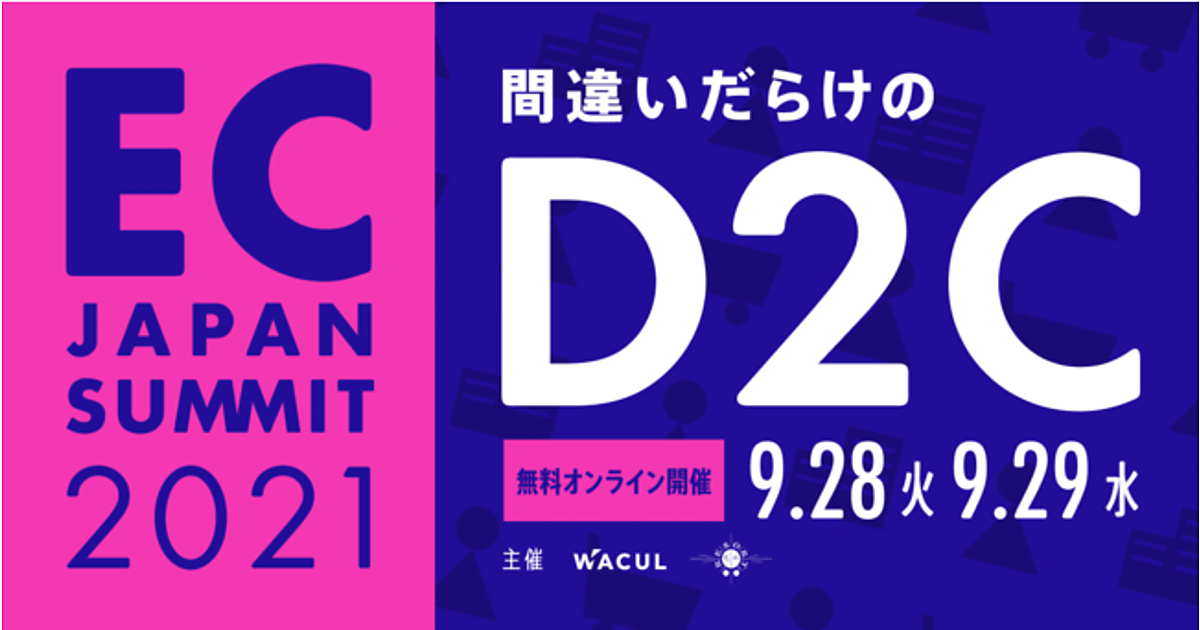 マーケティングのDX(デジタルトランスフォーメーション)プラットフォームを提供するWACULは9月28日(火)~29日(水)の2日間、無料で参加できるオンラインイベント「EC JAPAN SUMMIT 2021~間違いだらけのDtoC~」を開催する。