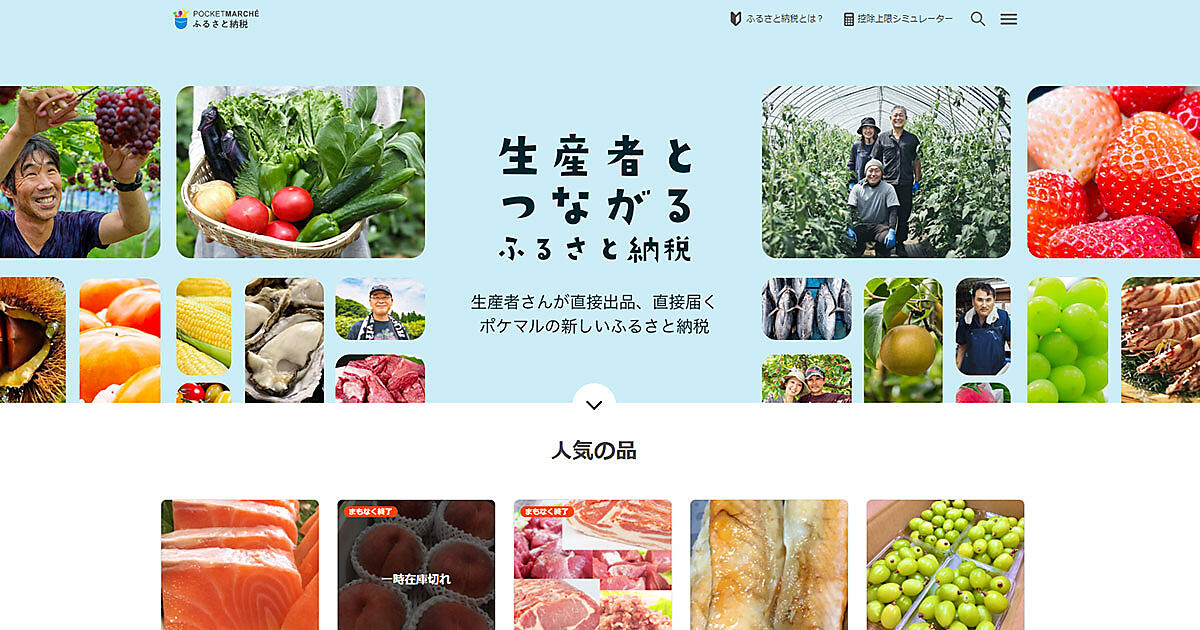 産直アプリ「ポケットマルシェ」を運営するポケットマルシェは9月27日から、ふるさと納税サービス「ポケマルふるさと納税」を開始した。