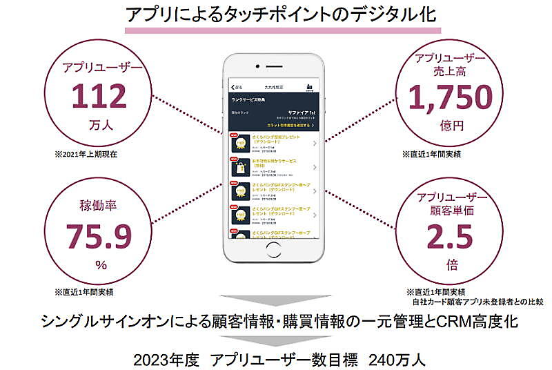 今期(2022年2月期)からスタートしている3か年の中期経営計画(中計)では、百貨店事業においてOMOの取り組みを推進。その一環として、アプリによるタッチポイントのデジタル化を進めており、シングルサインオンによる顧客情報・購買情報の一元管理とCRMの高度化を図っている。