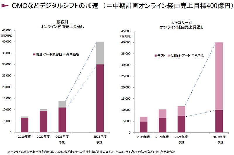 OMOによるデジタルシフトの加速で、2023年度のオンライン経由売上は400億円を目標に掲げる。