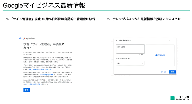 - <参考>海外SEO情報ブログ:Googleマイビジネスの投稿をナレッジパネルから作成する & サイト管理者の廃止