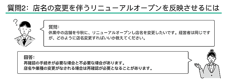 質問2. 店名の変更を伴うリニューアルオープンを反映させるにはどうすればいいのか
