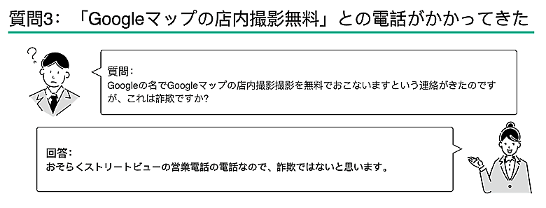 質問3. 「Googleマップの店内撮影無料」という内容の電話がかかってきた