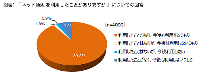 利用経験の有無にかかわらず、「今後利用しないつもり」は約8%にとどまった。ネット通販は老若男女を問わず広く浸透している。
