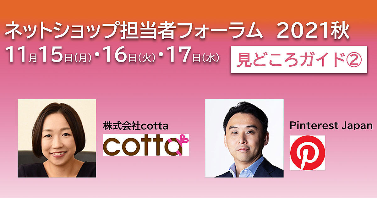 ユナイテッドアローズ、DINOS CORPORATION、Pinterest Japan、ヤッホーブルーイング、ブックオフ、千趣会、資生堂ジャパン、パイオニアといった有名企業、俳優・タレントとしても知られる保阪尚希さんが成功事例などを語る「ネットショップ担当者フォーラム 2021 秋」を、11月15日(月)・16日(火)・17日(水)に開催します。