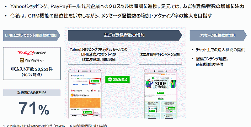 LINEを活用した購買体験の提供では、LINE公式アカウントの拡大策を実施、LINEギフトとヤフーとの営業連携を開始した。