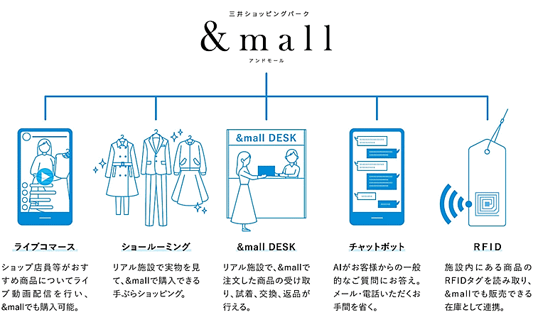 「&mall」は出店企業に新たな販売機会の創出をめざす「リアル施設共生型ECサイト」で、約400ショップが参加している。
