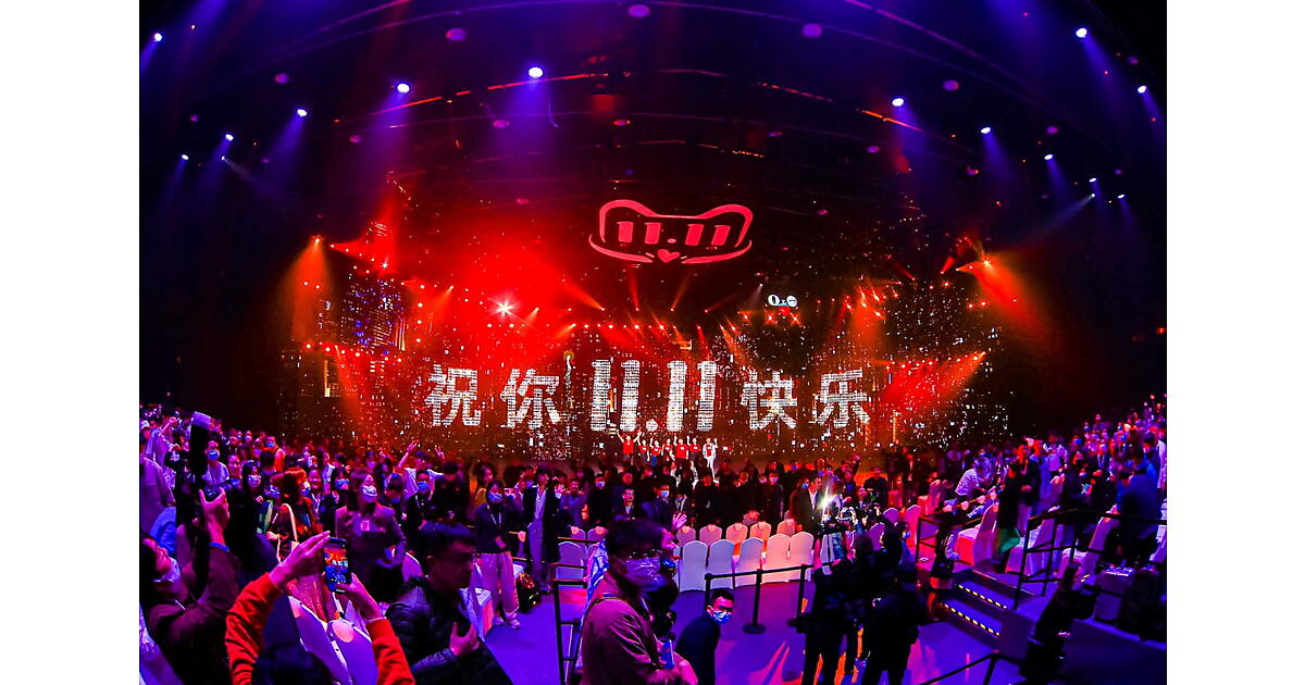 中国で行われたネット通販の買い物の祭典「独身の日」(W11、ダブルイレブン)で、中国のECプラットフォーム最大手の阿里巴巴集団(アリババグループ)の2021年における取扱高(GMV)は、前年比8.5%増の5403億人民元で過去最高を記録した。