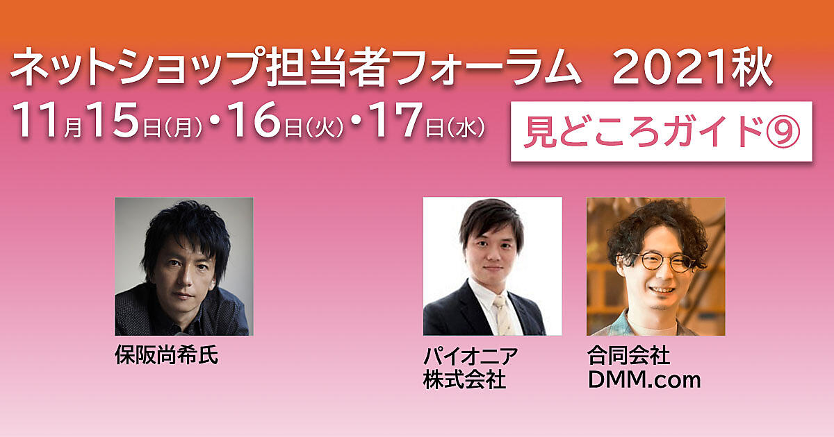 資生堂ジャパン、千趣会、アユダンテ、パイオニア、DMM.com、ブックオフコーポレーション、Facebook Japan、ヤッホーブルーイング、JX通信社といった有名企業、俳優・タレントとしても知られる保阪尚希さんが成功事例などを語る「ネットショップ担当者フォーラム 2021 秋」を11月15日(月)・16日(火)・17日(水)の3日間で開催しています。