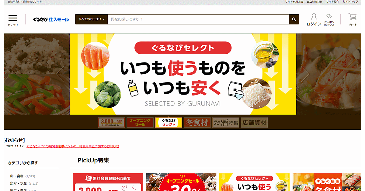 ぐるなびは11月17日、飲食店向け業務用食材・資材仕入れ専用ECサイト「ぐるなび仕入モール」を先行オープンした。