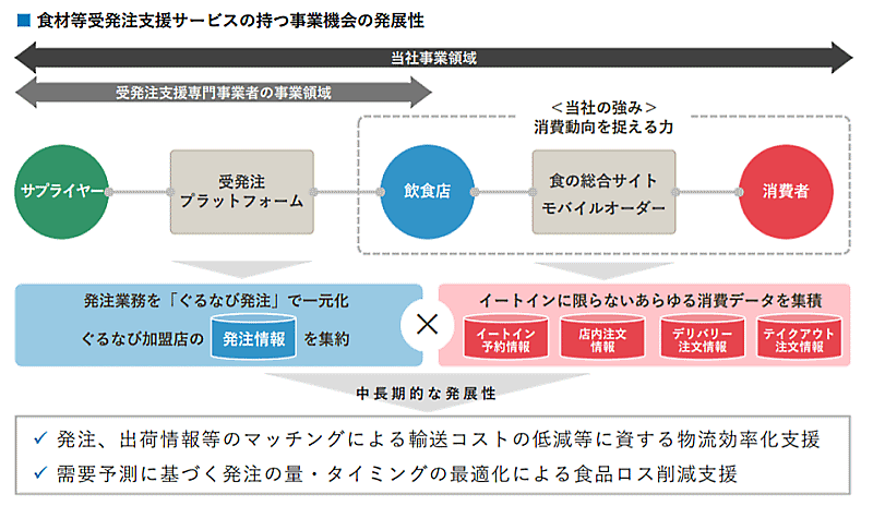 飲食店とサプライヤーをつなぐ食材受発注支援事業へ本格参入するための取り組みとして位置付ける。