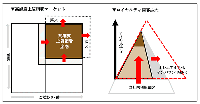 高感度上質消費の拡大・席巻に向け、デジタル改革(DX)と、リアル店舗とオンラインを融合したシームレスな顧客体験を提供し、パーソナル(個)マーケティングでファン化して“グループライフタイムバリュー”を拡大していく。