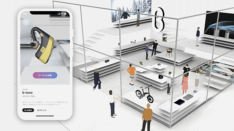 「メタパ」を利用したい企業・店舗は、仮想空間上でバーチャル店舗の構築から、アプリへの搭載、ECサイトへの連携をワンストップで実現できる。ベータ・ジャパンの「Virtual b8ta」が第1弾店舗として出店する。