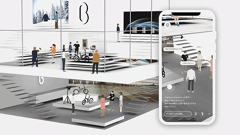 バーチャル空間で、遠隔地にいる家族や友人と同時接続、それぞれのアバターがバーチャル店舗を自由に移動でき、空間内にいる人と音声会話やテキストチャットでコミュニケーションを取ることができる。共有した人しかバーチャル店舗に入れないプライベートルーム機能も実装する予定。遠隔地でも一緒に買い物しているかのような体験を実現する。