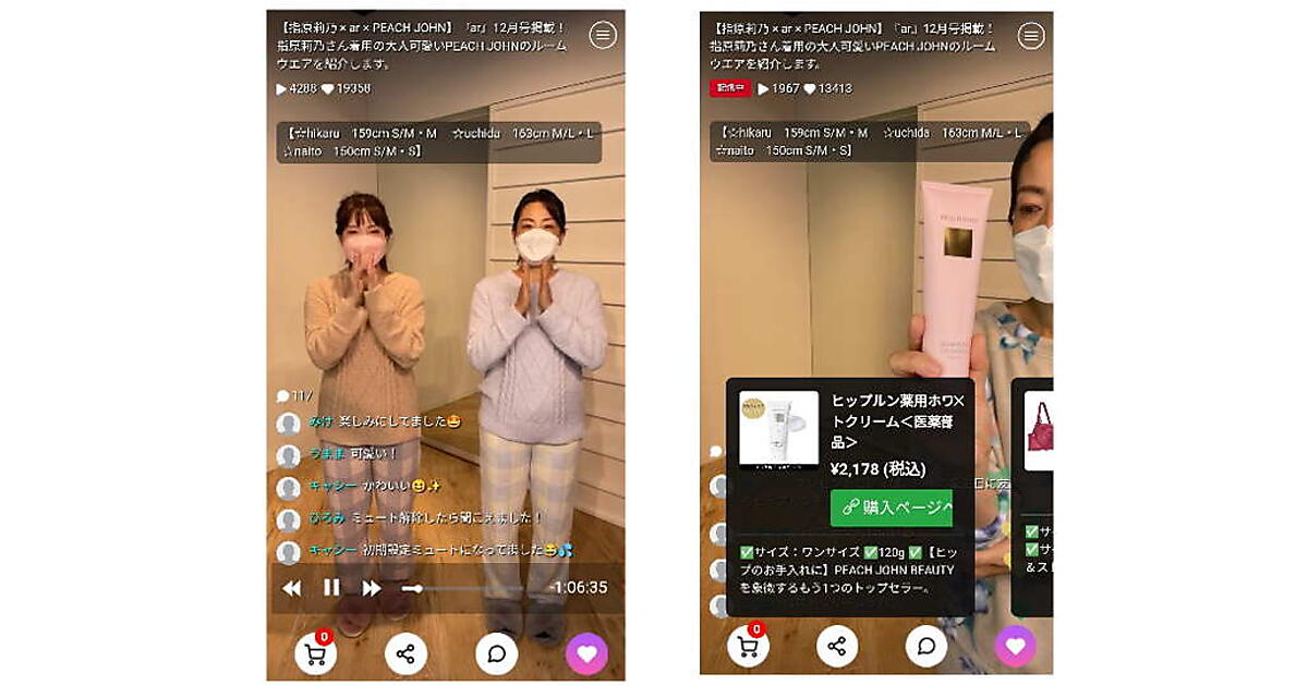 ピーチ・ジョンはこのほど、ライブコマースをスタートした。ピーチ・ジョンのスタッフが、商品の魅力を生配信で届ける。