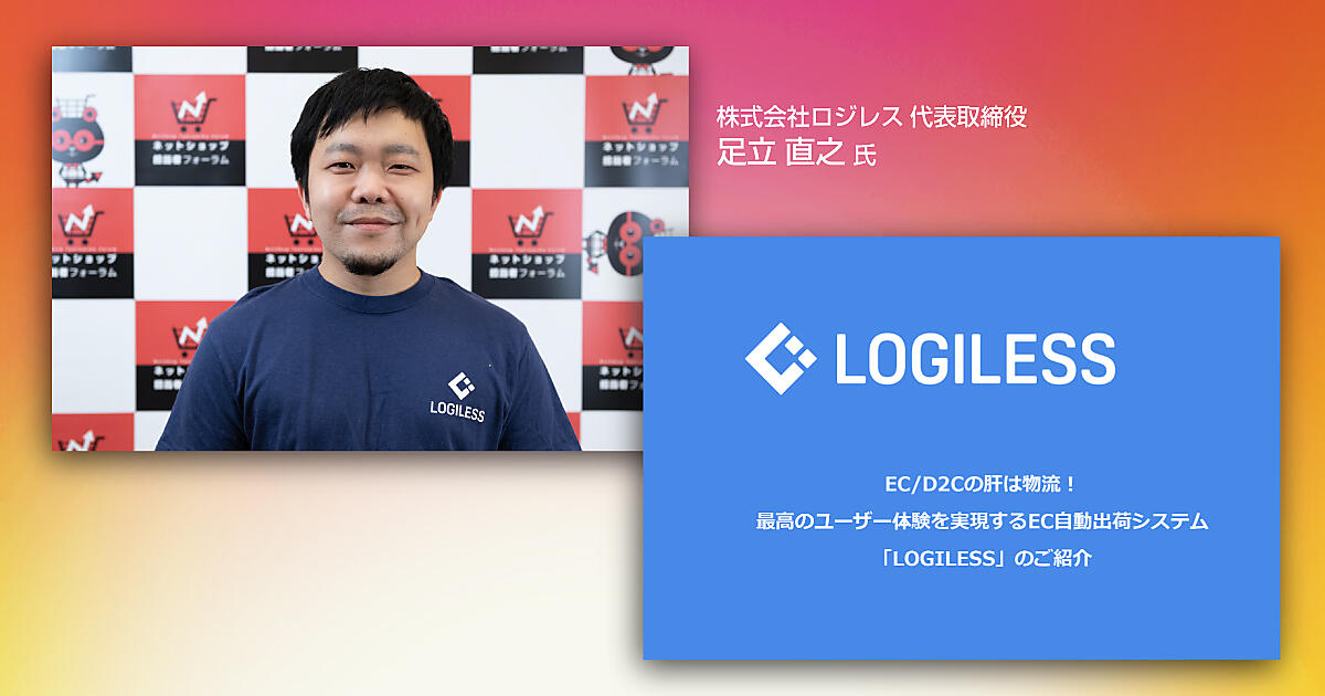 ロジレスの代表取締役 足立直之氏がEC自動出荷システム「LOGILESS」について事例を交えて解説する。
