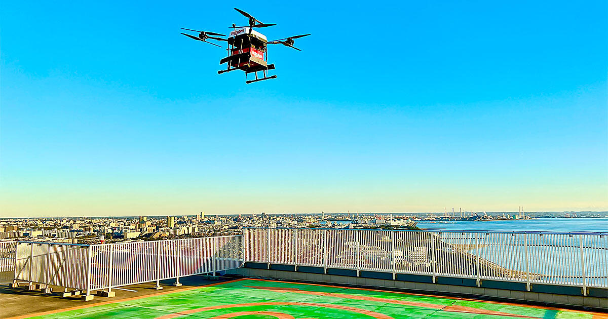 楽天グループと日本郵便の合弁会社であるJP楽天ロジスティクスは、千葉県においてドローンを活用したオンデマンド配送の実証実験を行った。都市部にある超高層マンションに向けたドローンによるオンデマンド配送は、今回の実証実験が国内初となる。
