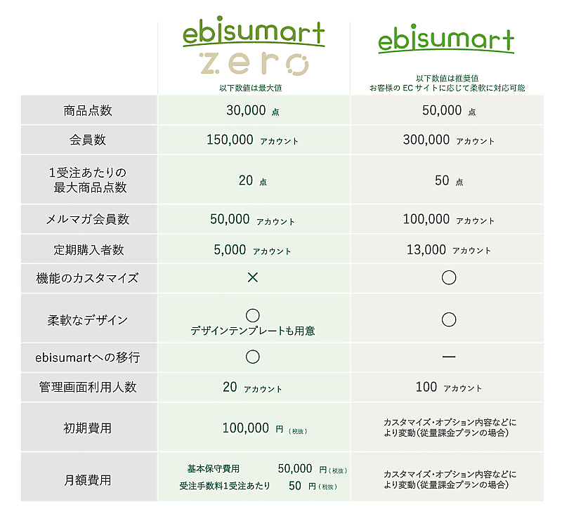 「ebisumart zero」は「ebisumart」よりもカスタマイズ性が低く、一部機能を制限している。