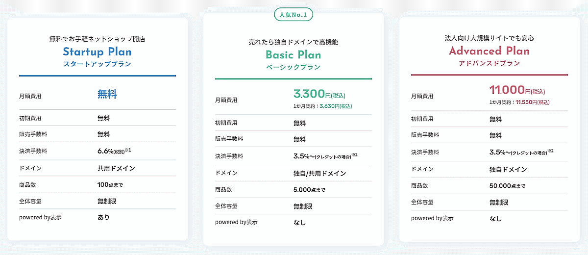 「スタートアッププラン」は決済手数料が6.6%(税別)。「ベーシックプラン」「アドバンスドプラン」は3.5%~。ショップの売上高が大きくなると決済手数料が大きな負担となる。おちゃのこネットは、「負担を軽減いただくために従来の月額プランへ変更いただくことで、月々の負担を抑えることが可能になる。ハイブリット型と呼ばれる料金プランがおちゃのこネットの大きな特徴」と説明する。
