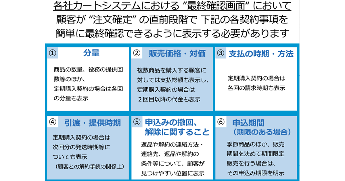 - 最終申込画面で人を誤認させるような表示の禁止(法第12条の6 第2項)