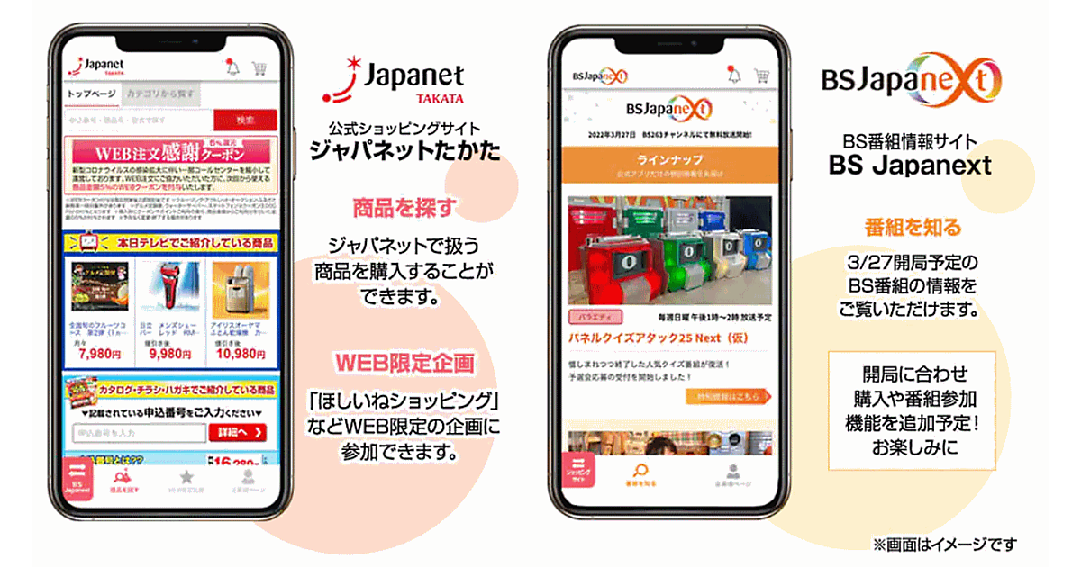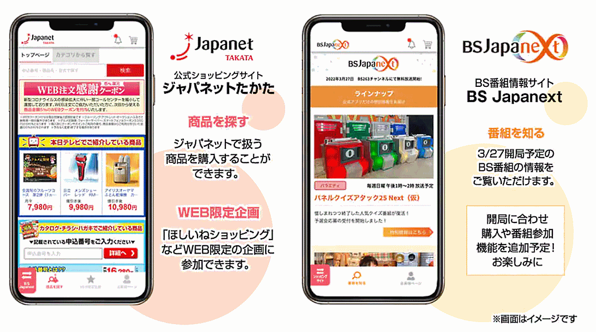 ジャパネットホールディングスのグループ会社であるジャパネットブロードキャスティングは、2022年3月27日にBS放送局「BSJapanext(ビーエスジャパネクスト)」を開局する。チャンネル番号はBS 263ch。放送エリアは全国(BS放送)で、視聴は無料。
