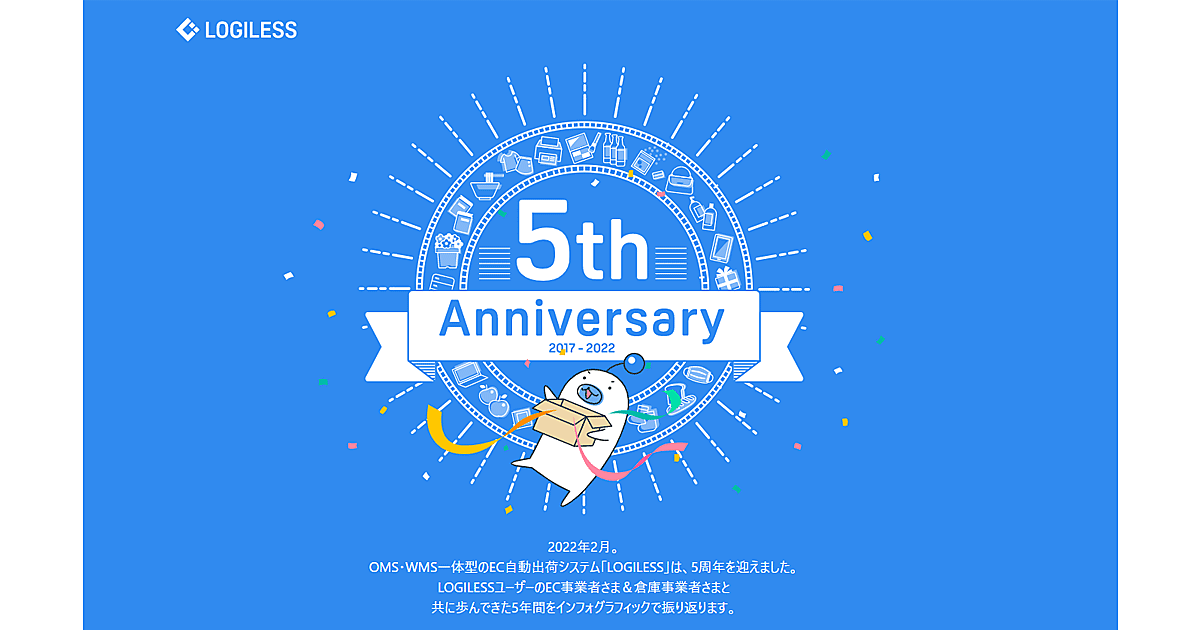 ロジレスは、EC自動出荷システム「LOGILESS」の5周年を記念して、インフォグラフィックを公開した。