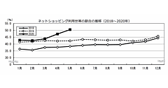 1世帯当たりのネットショッピングの月間支出額は平均1万8727円(名目増減率14.6%増)。ネットショッピング利用1世帯当たりの月間支出額は3万5470円で、名目増減率は6.3%増となっている。