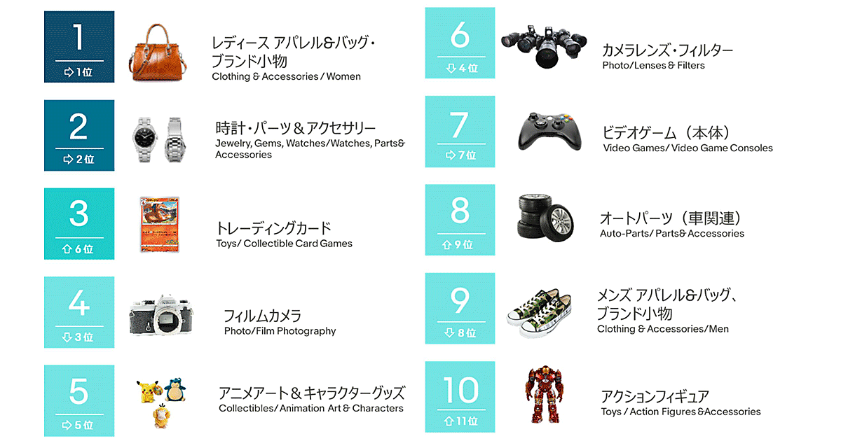 イーベイ・ジャパンは、オンラインマーケットプレイス「eBay」における2021年度第4四半期(10~12月)と、2021年の1年間に日本セラー(販売者)が出品したアイテムの販売動向を発表した。