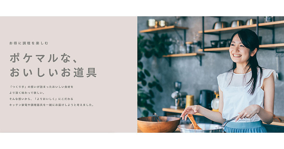 「ポケマルな、おいしいお道具」は、食材を通じてメーカーと利用者の継続的な接点を生むことを目的とした共同企画で、次のような特徴がある。