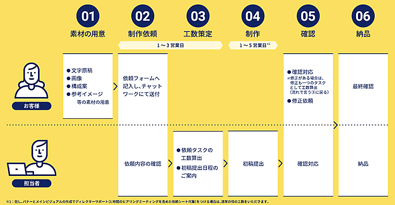 ネットショップ運営者が用意したテキスト、画像などの素材レイアウト案などを基に、バナー作成、商品登録などの作業を代行する月額制サービス。依頼ごとに発注書を取り交わす必要がなく、チャットで作業を依頼できる。