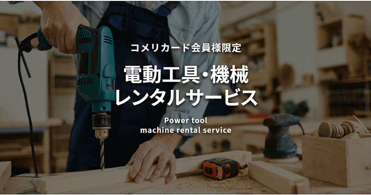 コメリは大型店を中心にDIYからプロユースまで、さまざまな場面で利用できる電動工具のレンタルサービスをコメリカード会員限定で提供してきた。仕事先で急遽必要になった場合や、DIYで1日だけ使いたい場合など、多くの顧客に利用されている。