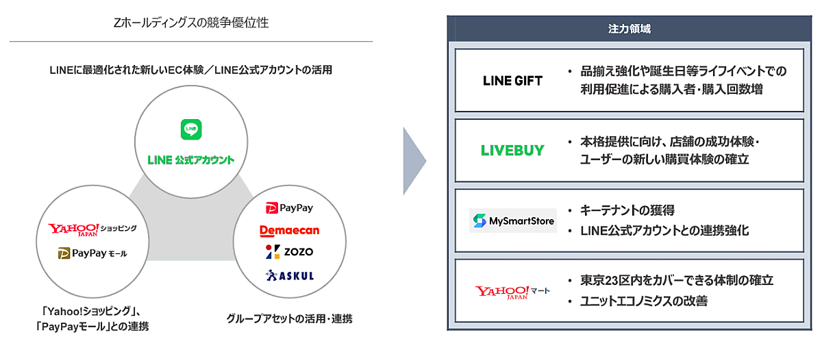 「Yahoo!ショッピング」「PayPayモール」での「PayPayあと払い」の展開など、eコマースと決済・金融のクロスユースも推進する。