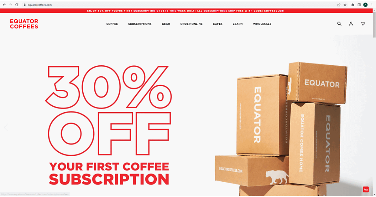 1995年創業のコーヒー専門店「Equator Coffees」は、2010年代に卸売り販売から消費者への直販ビジネス(D2C)に転換しました。2016年にサブスクリプションサービスを開始し、当初は定期購入者100人の獲得をめざしました。スタートから約6年。現在の定期購入者は2500人を超えています。