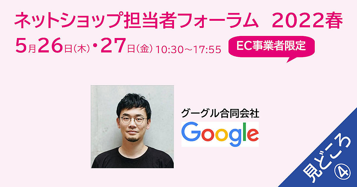 5月26日(木)・27日(金)の2日間で開催する「ネットショップ担当者フォーラム 2022 春」では、Google、ヤッホーブルーイング、ZOZO NEXT、資生堂、カインズ、ハルメク、オイシックス・ラ・大地といった有名企業が登壇。
