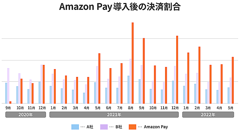 キャンペーン後も「Amazon Pay」の利用は増えていった。これはクレジットカード、プリペイドカード、キャリア決済など他の支払い方法から「Amazon Pay」に移行したか、これまで購入していなかったお客さまが買ってくれるようになったかの、2つの可能性が考えられる。