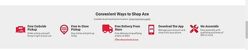 カーブサイドピックアップを利用する消費者は、長期的な顧客となり得ます。Ace(電力設備などの小売店)のカーブサイドピックアップサービス「Convenient Ways to Shop Ace」、Barnes and Noble(オンライン書店)のカーブサイドピックアップサービス「Find Your Place at B&N's Online Bookstore」は、カーブサイドオプションを宣伝しているほんの一例です。