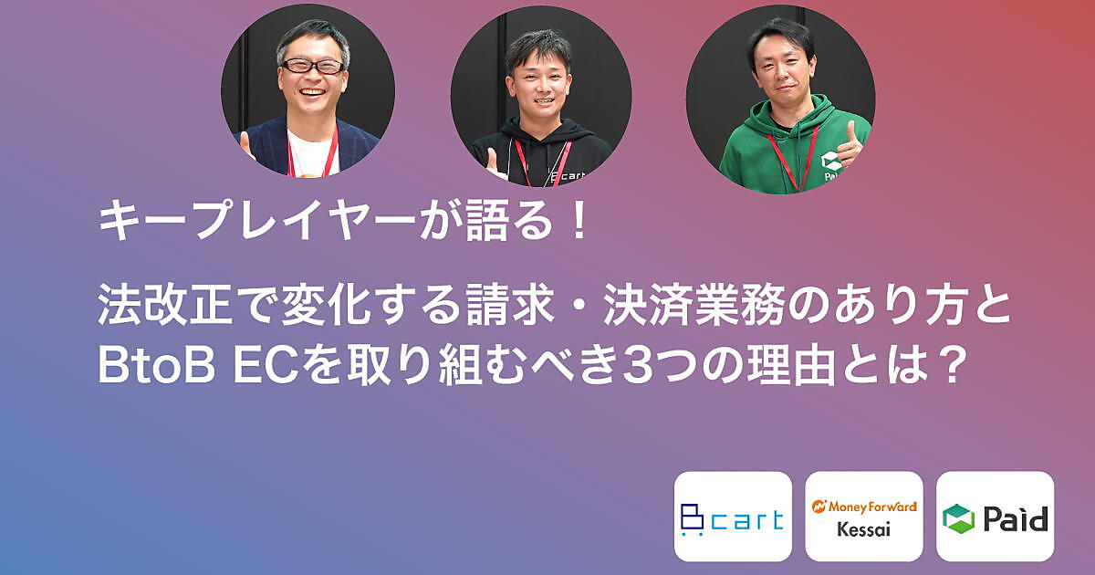 BtoB(法人向け取引)-ECで受発注業務のデジタル化は進んでいるものの、決済に関してはデジタル化が遅れているのが現状だ。こうした環境下、2022年1月施行の改正電子帳簿保存法、2023年10月に始まるインボイス制度(適格請求書等保存方式)への対応について、決済のデジタル化を進めなければさまざまな問題が生じることになる。BtoB-ECの決済に携わるキーマンが対応ポイントを語った。