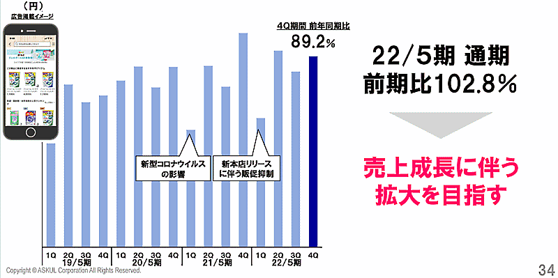 「LOHACO」の売上総利益率向上に向けては、商品粗利率の継続的な改善と広告ビジネスを強化する。収益認識に関する会計基準等を適用した2022年5月期通期は前期差0.2ポイント減、国内では同0.5ポイント増だった。