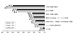 今後の物価変動に関する見方も聞いた。1年後については「少し上がる」が57.7%(前回調査比6.2ポイント減)、「かなり上がる」が29.4%(同9ポイント増)。「かなり上がった」「少し上がった」の割合を合わせると87.1%に達し、前回調査比2.8ポイント増えた。