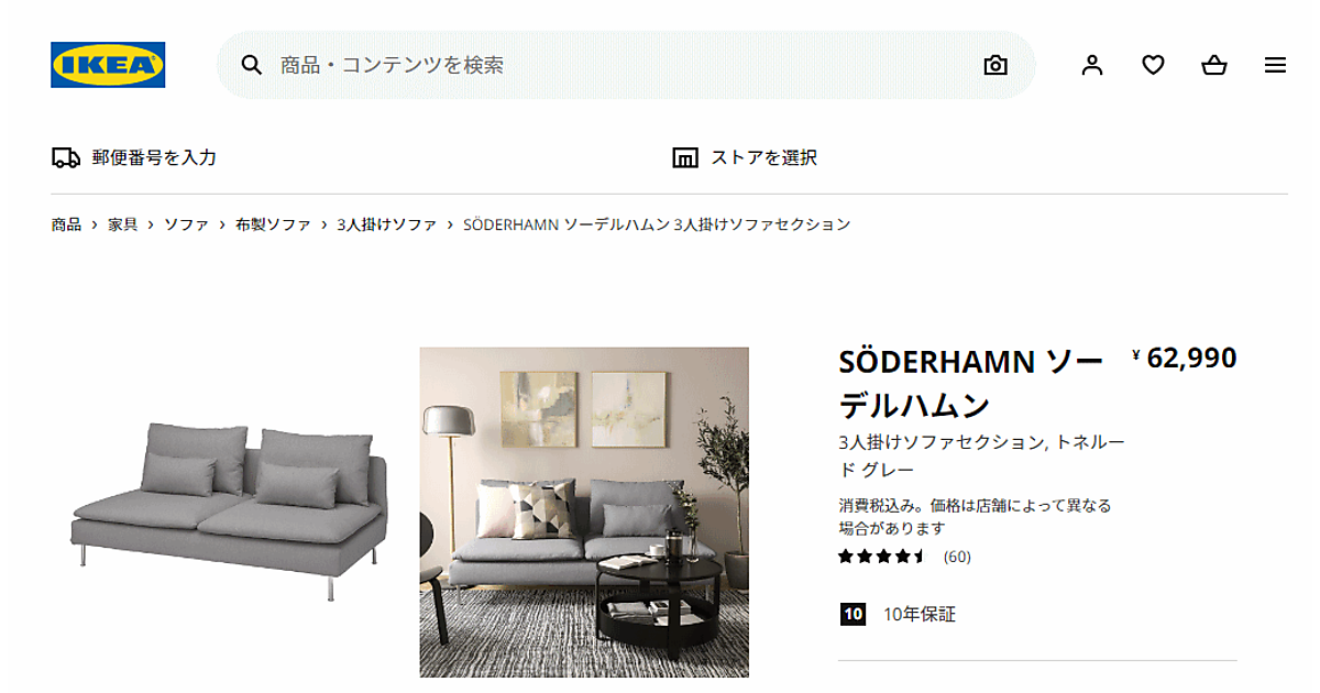 イケア・ジャパンは2017年4月、EC事業を本格スタート。Webサイトに掲載している商品をショッピングリストへ追加、店舗受け取りもしくは自宅への配送(店舗から配送可能な地域が対象)を選んで、決済する仕組みを提供。店舗から商品を配送する仕組みで展開している。