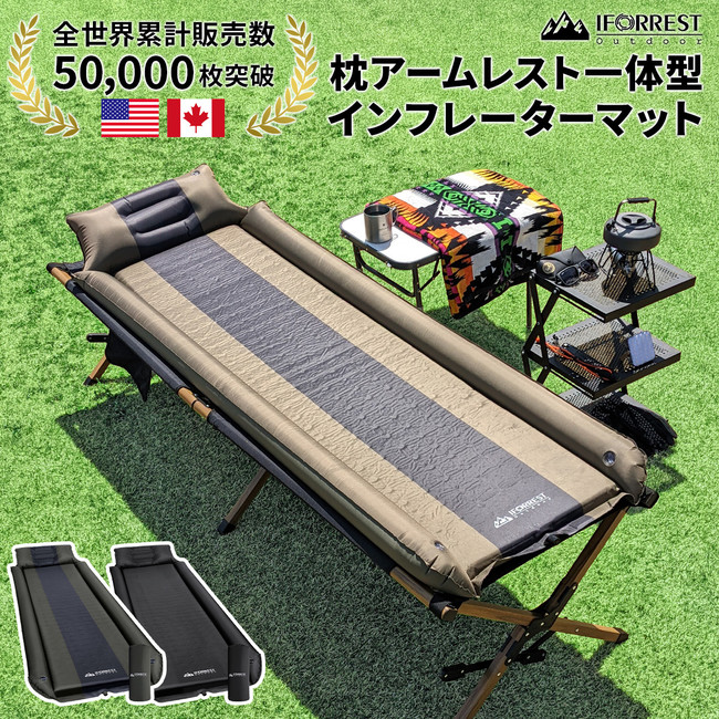 アメリカ、カナダでの累計販売個数5万枚突破!レビュー4.3以上の高評価のインフレーターマットIFORREST枕アームレスト一体型インフレーターマットは全世界で累計50,000枚販売したインフレーターマットです。