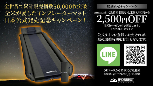 「アウトドアでの眠りを思い出に」をテーマにしたイスラエル発アウトドアブランド「IFORREST」についてユア・トレジャー合同会社(本社:愛知県尾張旭市、代表:安江俊昭)が、日本独占販売代理権を獲得しました。日本初上陸の商品として、『IFORREST枕アームレスト一体型インフレーターマット』を本格キャンプシーズン到来目前の2022年6月3日(金)に発売いたします。