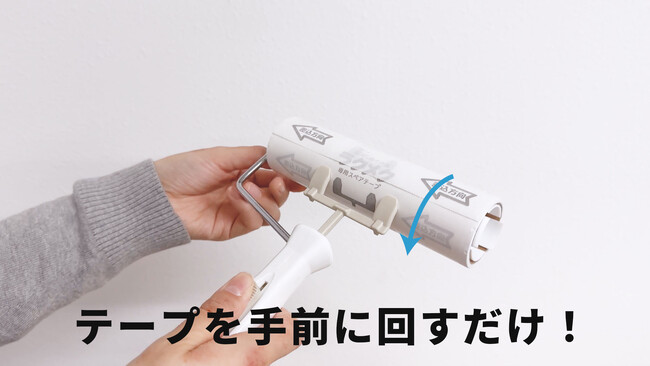 https://rakumeku.com/本体レバーを押しながら、テープを手前に回すだけで簡単にテープがめくれます。