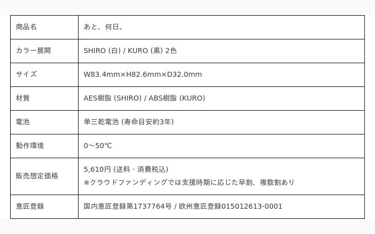 【 使い分け可能な2カラー 】「 あと、何日。」はSHIRO【白】 とKURO【黒】の2カラー展開。