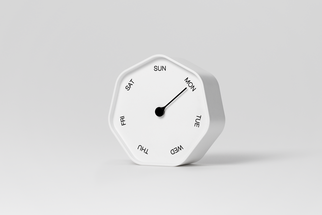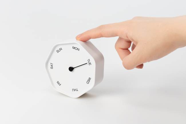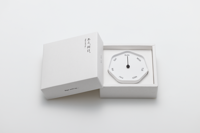 自分にとって大切な日を設定して、時計を回して12時の位置に指定の曜日をセットする。するとこの時計はその日まで「あと、何日。」を刻みます。この、楽しみや締切りまで「あと、何日。」という意識が、 毎日をワクワクさせたり、心の準備をさせたり、 締め切りまでの追い上げを鼓舞したり、 日常の意識と行動を変える小さなきっかけになります。