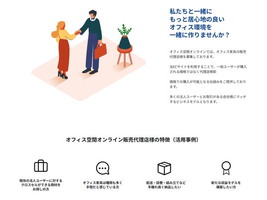 オフィスの内装コンサルティングを行う株式会社オフィス空間(本社:東京都渋谷区道玄坂、以下、当社)は、2024年3月27日より、オフィスや店舗で使用するコントラクト家具(業務用家具)の販売に特化したB2B向けECサイト「オフィス空間Online」の本格運営を開始いたします。当サイトでは、一般ユーザーはもちろん、代理店としてご登録いただくことで仕入れ用サイトとしてもご活用いただけます。オフィス空間Online 公式サイト