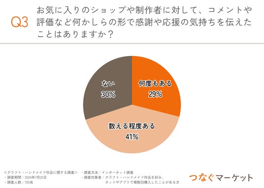 まとめ:購入者はショップや制作者との“つながり”を求めている!つなぐマーケットの「エール機能」を活用してみては?今回の調査で、クラフト・ハンドメイド作品の魅力や、購入者が作品を売っているショップや制作者への感謝の気持ちを伝えたいと考えている方が多いことが明らかになりました。