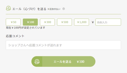 ショップの活動を金銭的に応援することができる機能です。