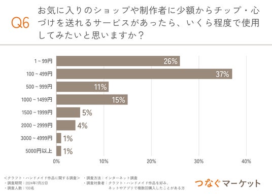 では、お気に入りのショップや制作者に少額からチップ・心付けを送れるサービスがあったら、いくら程度で使用してみたいと思うのでしょうか?